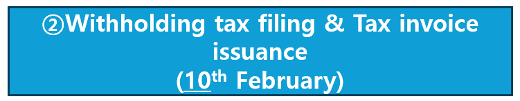 *For example, if your employee has a contracted salary of 2,000,000 KRW, you must deduct 100,000 KRW for taxes, and pay your employee 1,900,000 KRW. The 100,000 KRW you deducted must be reported on a withhold tax return and paid to the tax office on behalf of your employees.